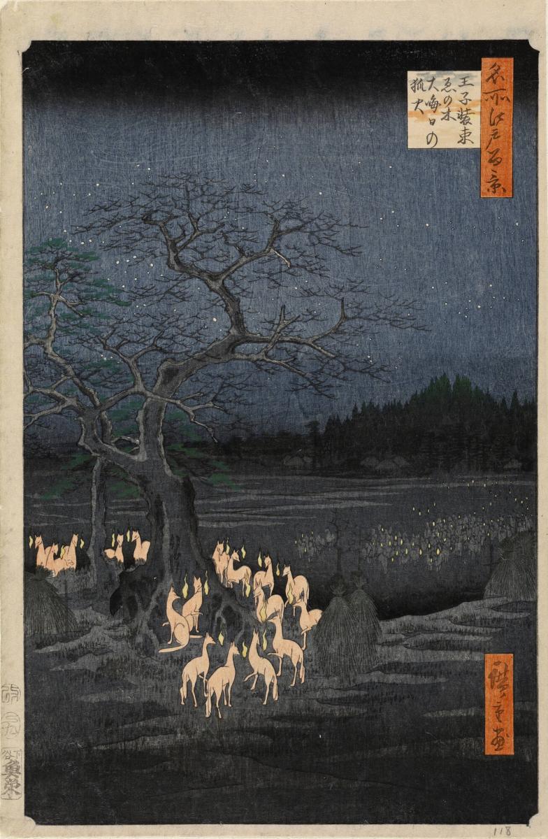 New Year's Eve Foxfires at the Changing Tree at Ōji (Ōji Shōzoku enoki Ōmisoka no kitsunebi), from One Hundred Famous Views of Edo (Meisho Edo hyakkei)