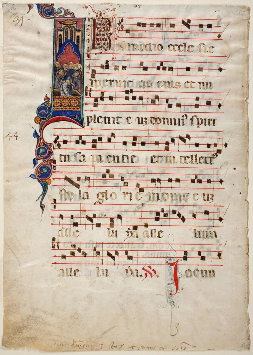 Leaf from a Gradual, with the Initial I ("In medio"): The Translation of the Body of St. Dominic