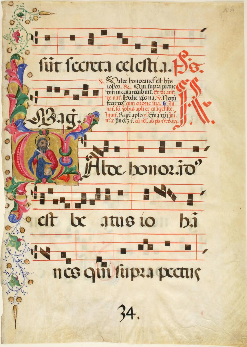 Leaf from an Antiphonary, with the Initial V ("Valde"): St. John the Evangelist