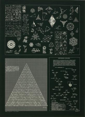 Not on viewAgnes Denes uses her work to explore the relationship between language, mathematics, philosophy, and the natural environment. She is interested in analyzing accepted knowledge through visual means in order to develop new conceptions of human existence. Typical of her complex oeuvre, Dialectic Triangulation examines the method of triangulation, whereby the location and measurement of a point is determined by forming triangles from other known points, in both mathematical and philosophical terms. In discussing her rationale for including this shape in her work, Denes once said: “[Pyramids] have little to do with their Egyptian ancestors; rather, they represent social structures in the form of a visual philosophy that convey ecological, social, and cultural issues. Their purpose is to respond to humanity’s crucial concerns, and to seek benign solutions to them.” For Denes, the pyramid represents the tool through which she determines the threefold nature of such philosophical and scientific concepts as ethics, logic, genetics, and evolution.