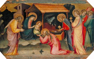 On viewMariotto di Nardo assumed the role of one of the principal painters of Florence following the death of Agnolo Gaddi in 1396, and received many prestigious commissions in Florence and the surrounding area. To manage the demands of his patrons, he maintained a large workshop with several assistants. The Adoration is one of the artist's most sophisticated and accomplished works, and may have been produced with the assistance of the premier figural sculptors of the day, Lorenzo Ghiberti. Particularly impressive about this work is the adventurous spatial construction and figural contrapposti, as well as the subtle light effects. Certainly the painting is indebted to Ghiberti's bronze relief of the same subject on the north door of the Baptistry in Florence.