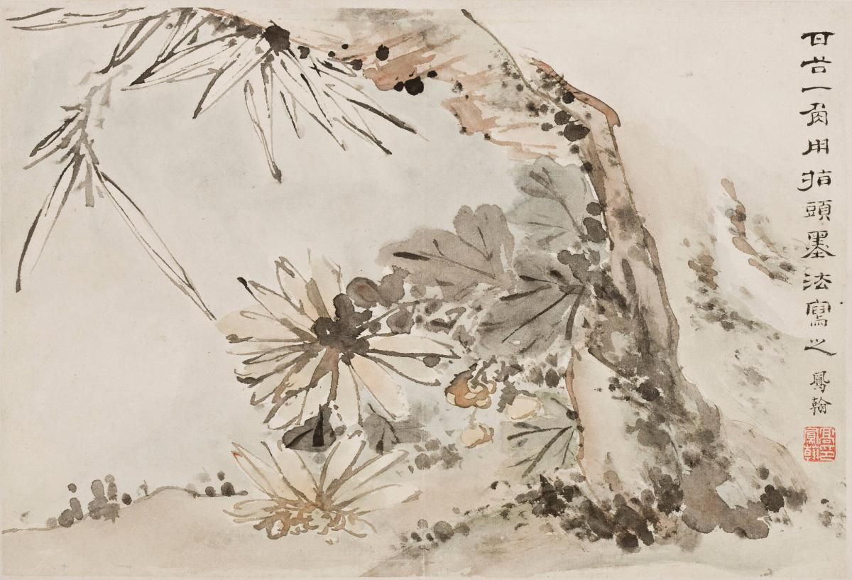 Chrysanthemums and Rock, from the album Flowers, Rocks, Bamboo, and Landscapes
