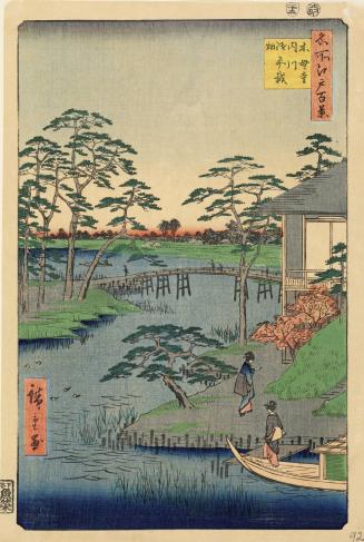 The Mokubo Temple, the Uchi River, and the Gozensai Fields (Mokubo-ji Uchigawa Gozensaihata), from the series One Hundred Famous Views of Edo (Meisho Edo hyakkei)