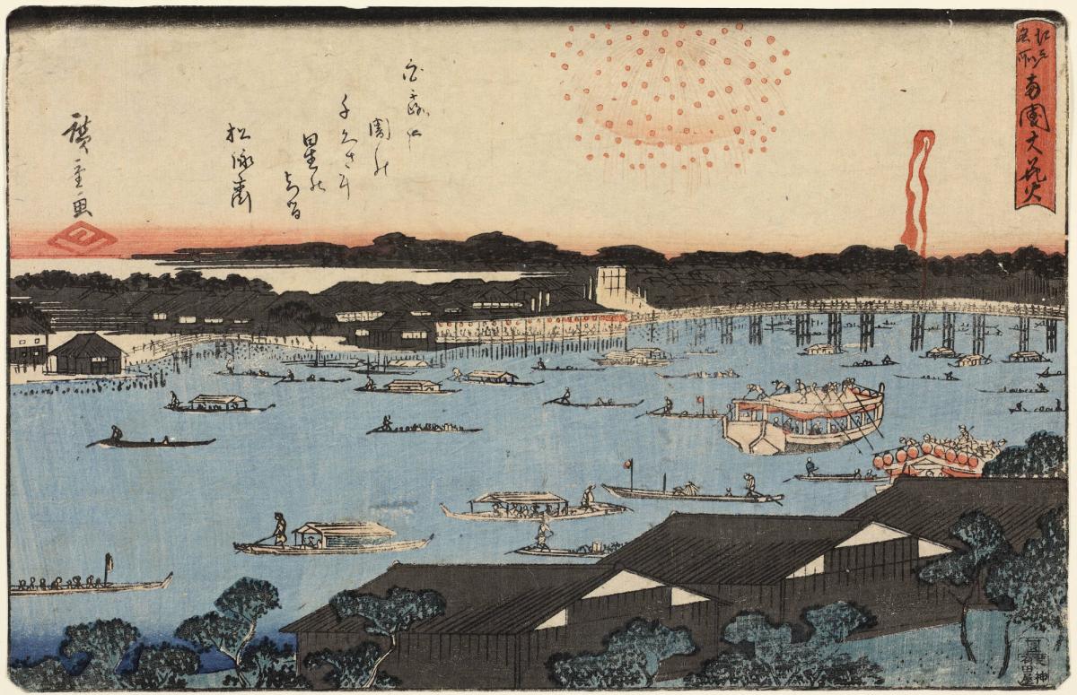 Fireworks over Ryogoku, from the series Famous Places in Edo