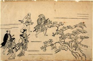 Samurai and Wakashū Walking toward Cherry and Pine Trees, from the series Flower Viewing at Ueno