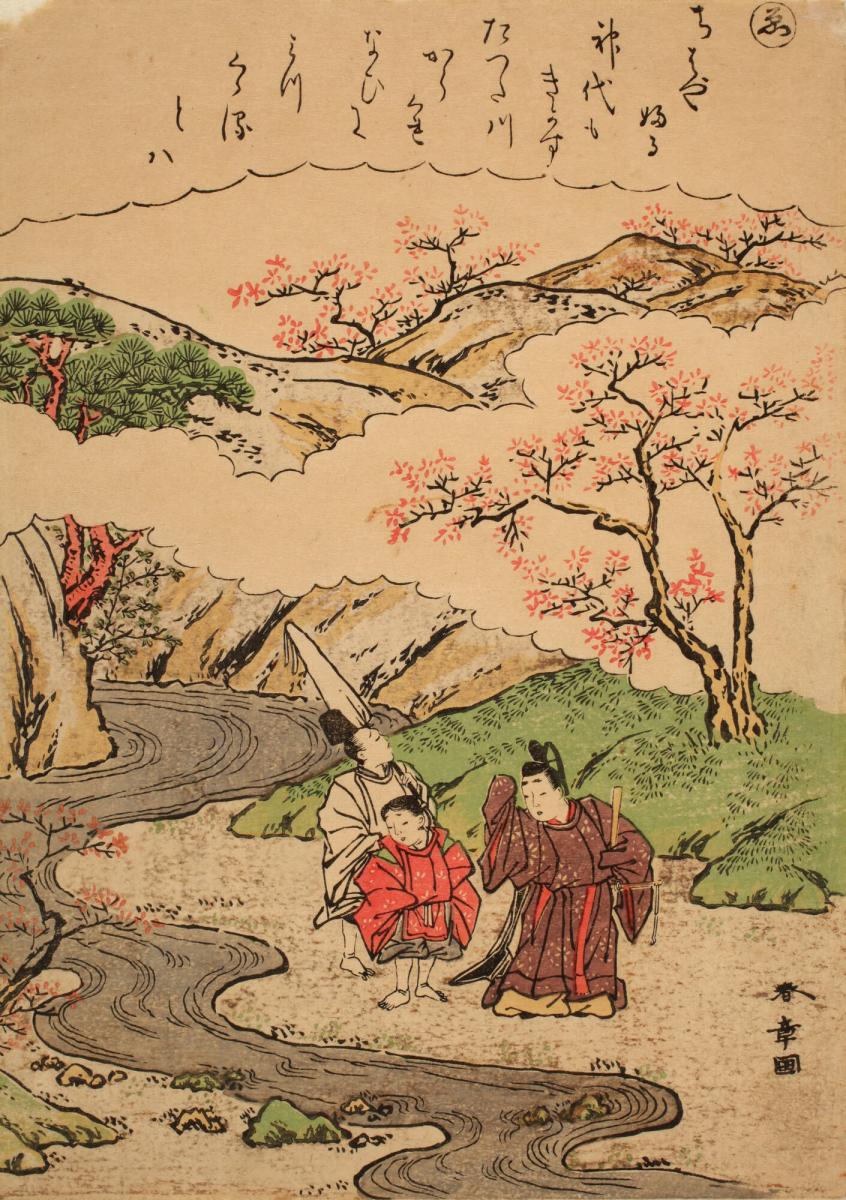 Narihira Viewing Maple Leaves at the Tatsuta River, from an untitled series of illustrations from Tales of Ise
