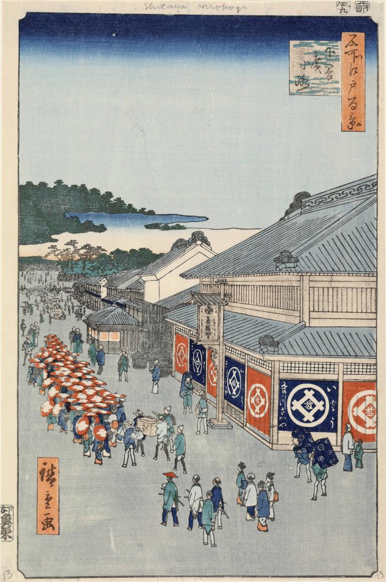 Hirokō Street in the Shitaya District (Shitaya Hirokōji), from the series One Hundred Famous Views of Edo (Meisho Edo hyakkei)