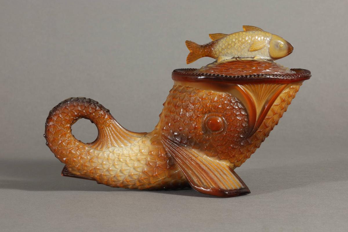 Covered, Dolphin-Shaped Dish with Fish Handle