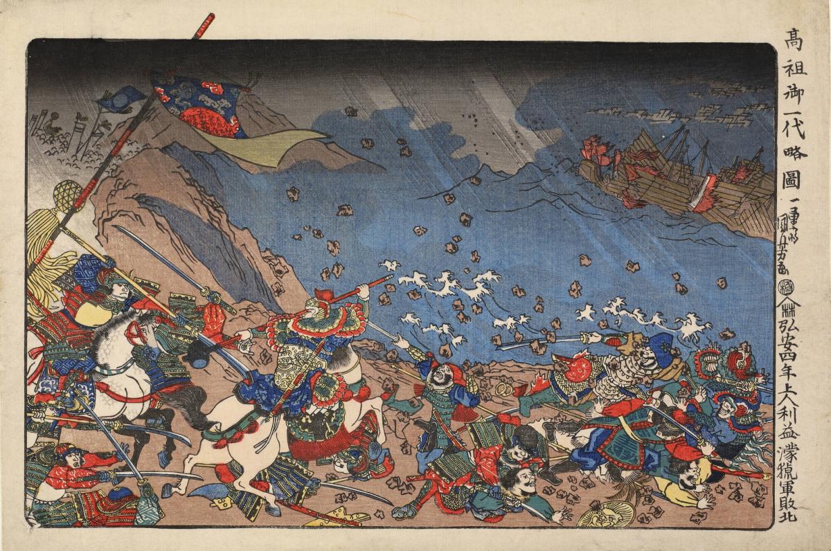 The Saint's Efforts Defeat the Mongolian Invasion in 1281, from the series A Short Pictorial Biography of the Founder of the Nichiren Sect