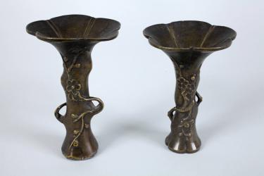 Vase in the Form of a Tree Trunk with Cherry Blossoms