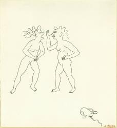 Not on viewThis is one of a series of six drawings in the museum made to illustrate Three Young Rats and Other Rhymes, a whimsical book of nursery-rhymes edited by James Johnson Sweeney and published by the dealer Curt Valentin in 1944. The poem that this illustrates reads: "Betty my sister and I fell out / And what do you think it was all about? / She loved coffee and I loved tea, / And that is the reason we could not agree."