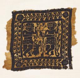 Tunic Fragment with Standing Hunters, Dog and Rabbit