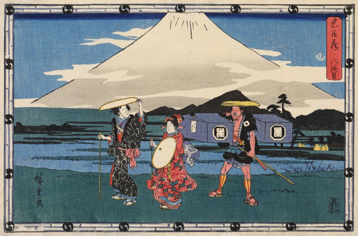 Tonase and Konami Pass Mt. Fuji on Their Way to Find Rikiya, Act 8 from the series Chushingura