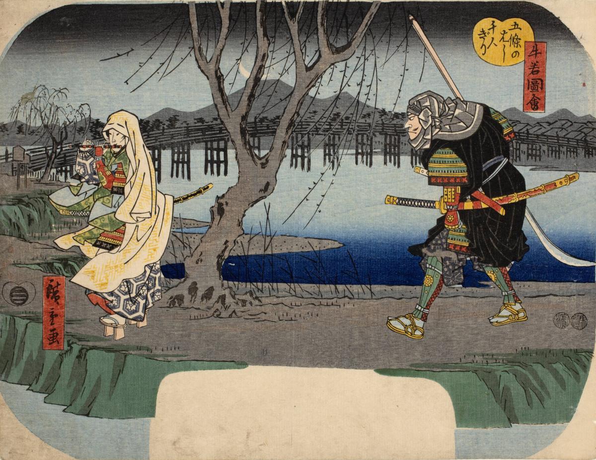Attacking One Thousand People at Gojō Bridge, from the series Pictures of Ushiwakamaru (Ushiwaka zue)
