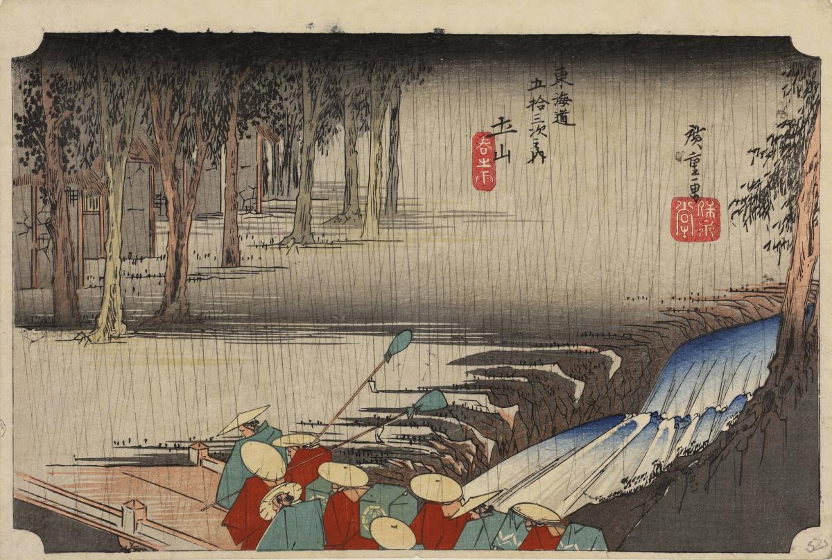 Spring Rain at Tsuchiyama, no. 50 from the series Fifty-three Stations of the Tōkaidō