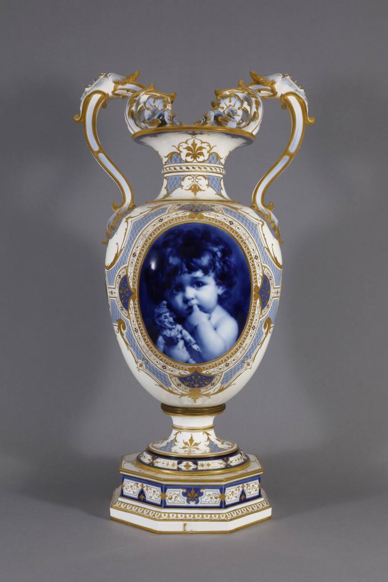Royal Berlin Two-Handled Urn Decorated with Medallion of Child and Medallion of Flowers and Leaves