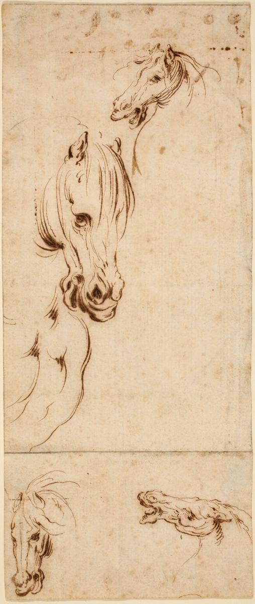 Not on viewThe heads of horses sketched here are copies after those in a series of prints made in 1590 by the artist Antonio Tempesta.