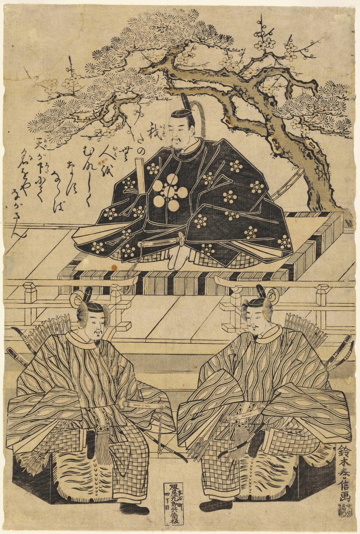 Sugawara no Michizane Seated in State with Two Court Attendants