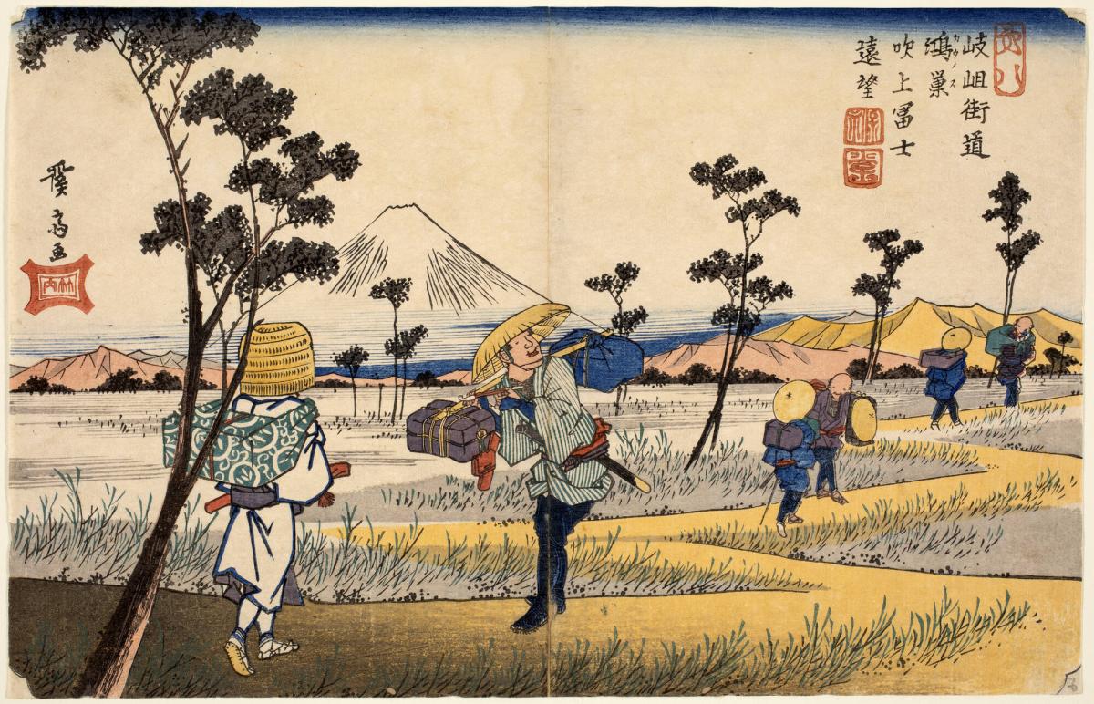 Distant View of Mt. Fuji from Fukiage, no. 8 from the series A Set of Pictures of Kisokaidō