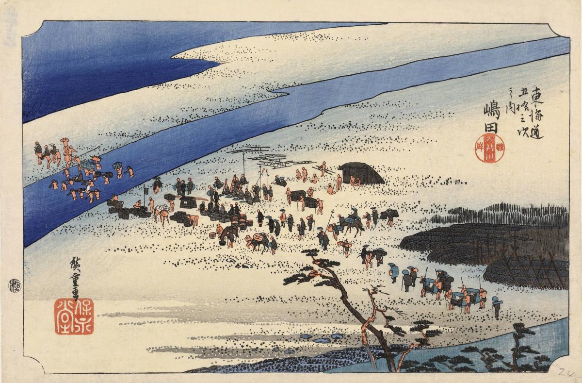 The Suruga Bank of the Oi River at Shimada, no. 24 from the series Fifty-three Stations of the Tōkaidō