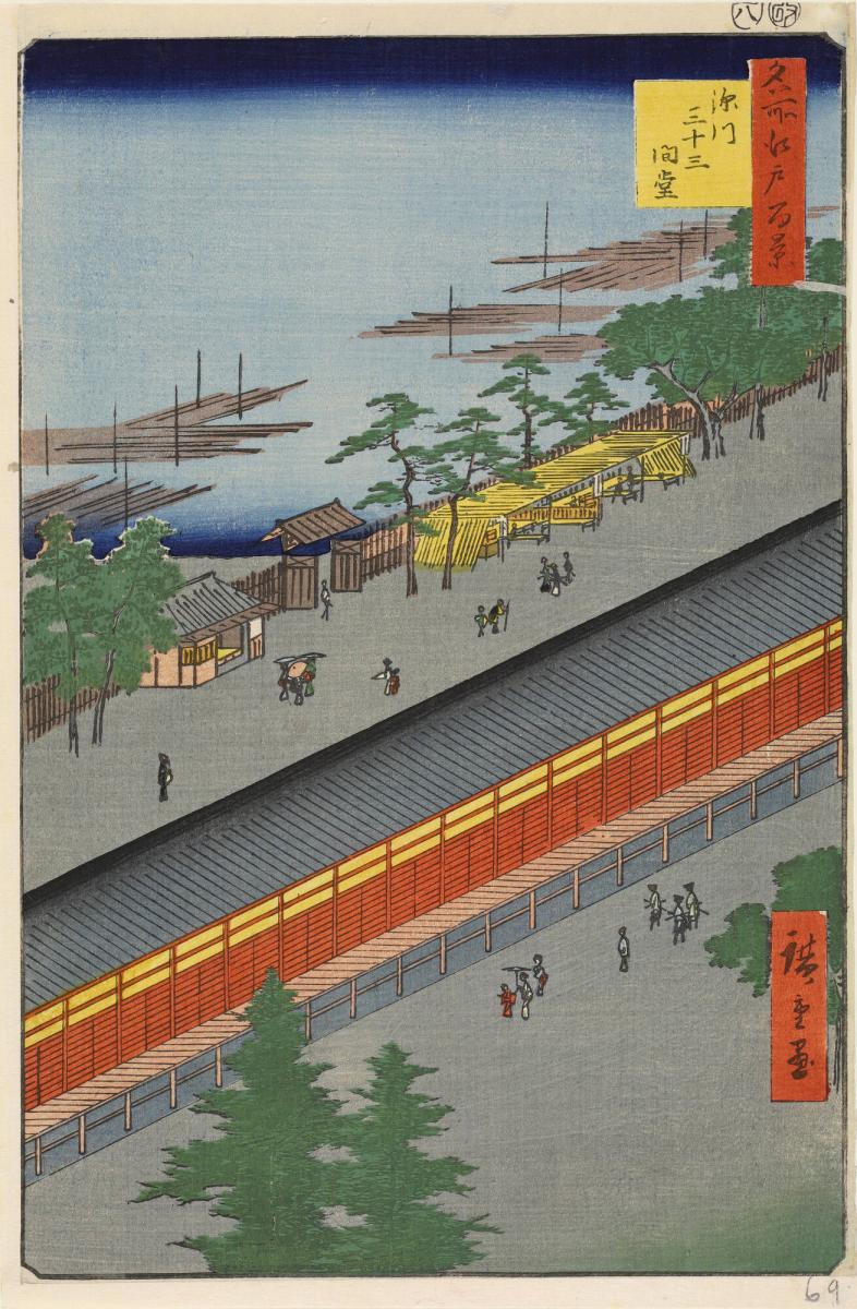 Hall of Thirty-Three Bays in the Fukagawa District (Fukagawa Sanjūsangendō), from the series One Hundred Famous Views of Edo (Meisho Edo hyakkei)