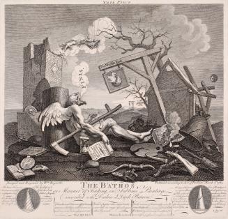 Not on viewThis engraving was published just months before Hogarth’s death. He intended it to serve as the tailpiece, or final print, in his volume of collected works. The landscape is littered with symbols of death, decay, and the passage of time. The reclining figure, an allegorical representation of Time, appears himself to be exhausted.