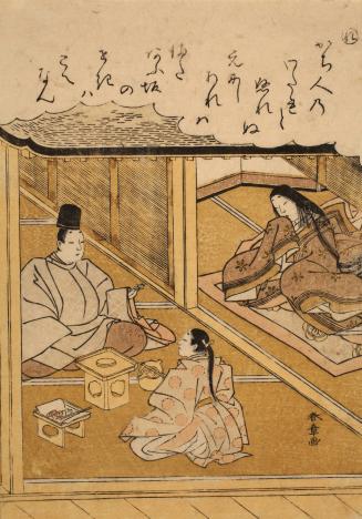 Lady Entertaining Courier, no. 17 from an untitled series of illustrations from Tales of Ise