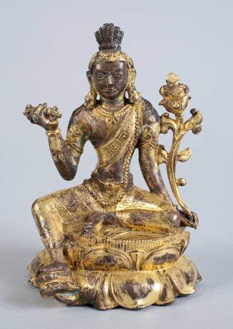 On viewThe bodhisattva Vajrapāṇi can be identified by the vajra they hold, here in the proper right hand. The vajra, dorje in Tibetan, is a small ritual scepter (seen below) that symbolizes many things in Vajrayana Buddhism. The vajra was originally the god Indra’s weapon, a lightning bolt, but in a Buddhist context first came to symbolize the power of Vajrapāṇi as a protector of Buddhism, and later the power of a concentrated mental state of awareness.