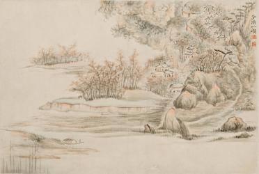 Autumn Landscape with Village, from the album Flowers, Rocks, Bamboo, and Landscapes
