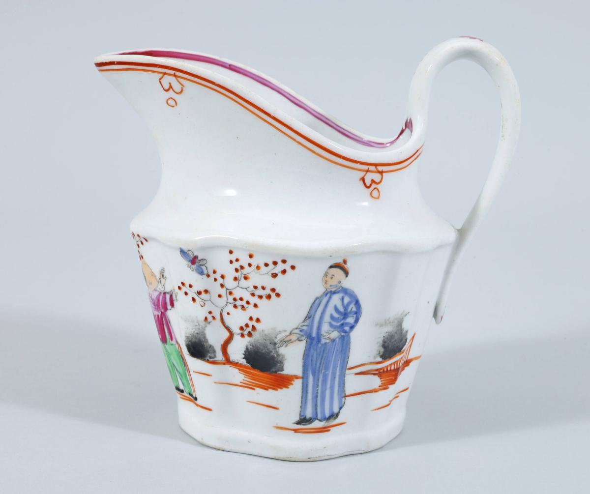 MediumPorcelain with iron-red, black, magenta, green, and blue glaze