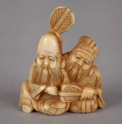 Netsuke of Fukurokuju, God of Happiness, Wealth and Longevity; and Jurojin, God of Longevity