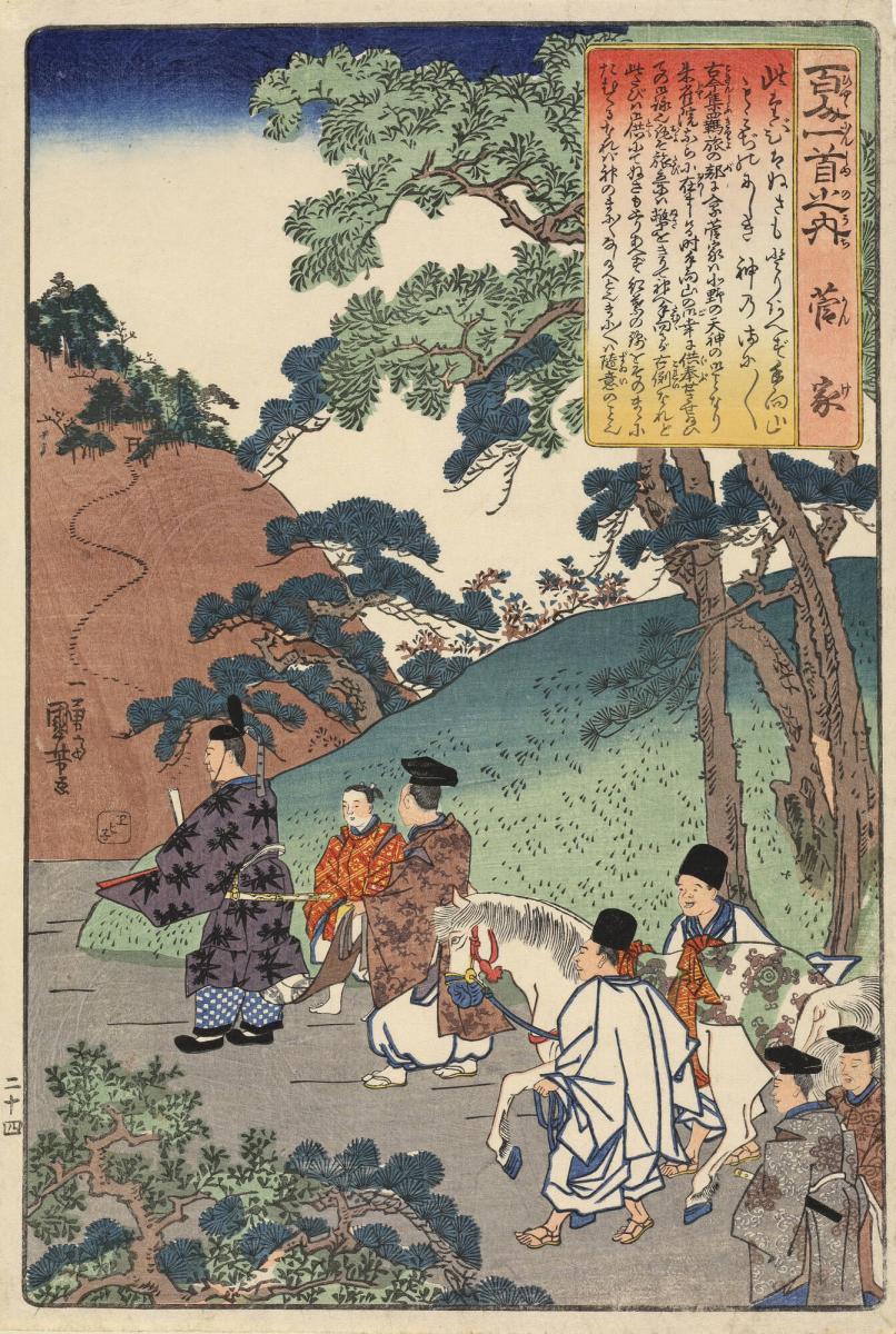 Sugawara no Michizane Approaching a Sacred Mountain, no. 24 from the series The One Hundred Poems
