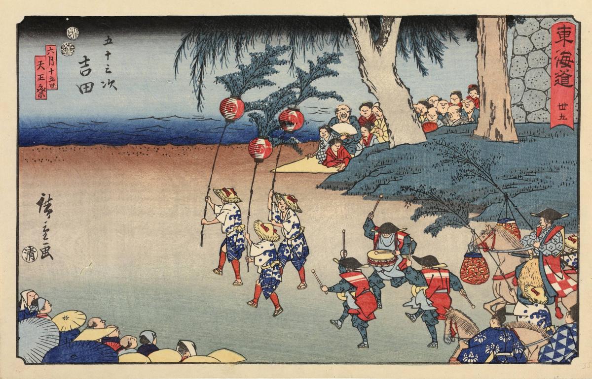The Tenno Festival Procession on the Fifteenth Day of the Sixth Month at Yoshida, no. 35 from the series The Fifty-three Stations of the Tōkaidō, also called the Reisho Tōkaidō
