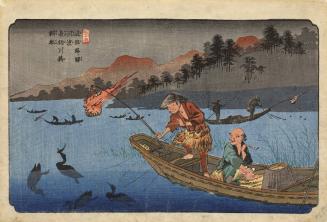 Kōdo: Cormorant Fishing Boats on the Nagae River, no. 55 from the series The Stations of the Kiso Road
