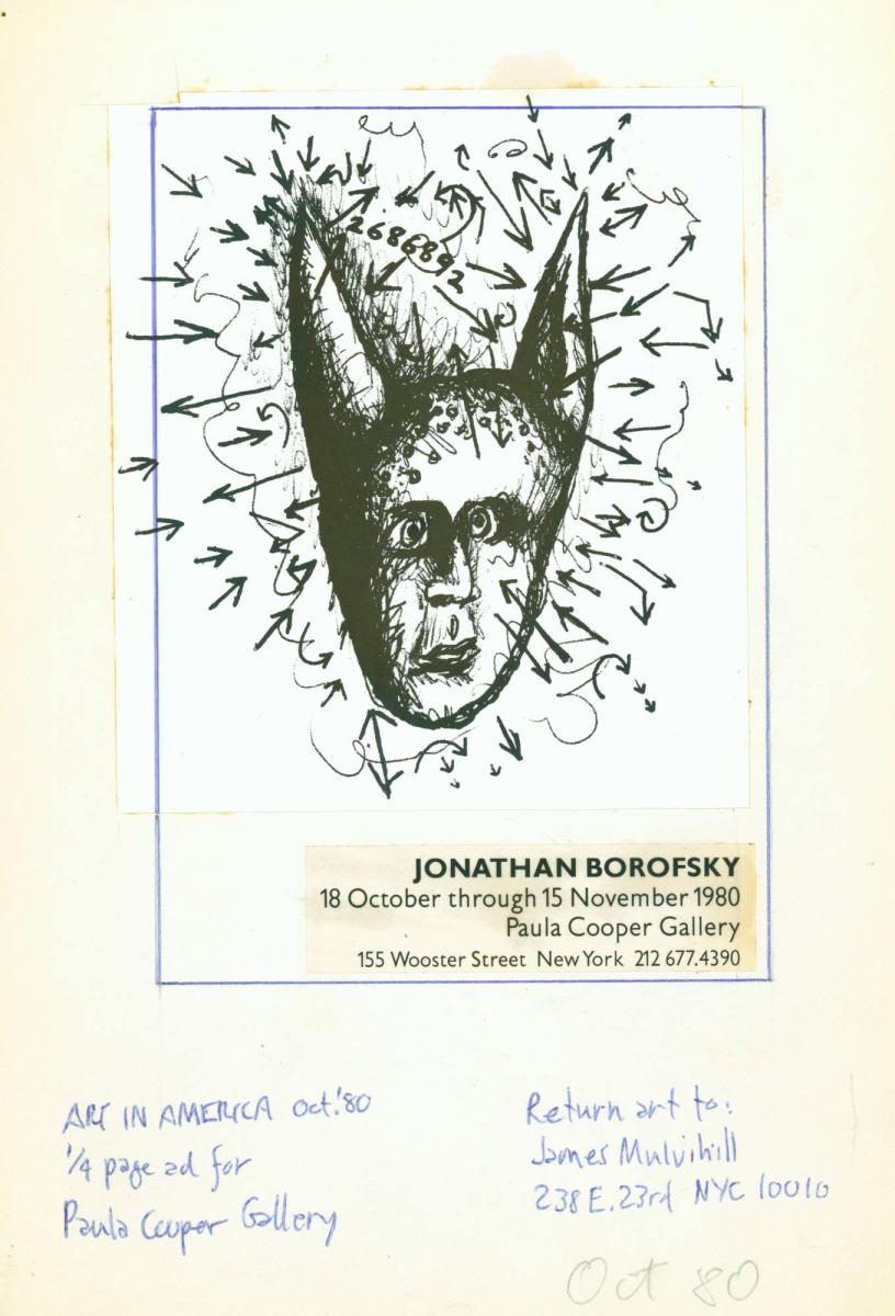 Exhibition Announcement for Jonathan Borofsky, October 18 - November 15, 1980, Paula Cooper Gallery