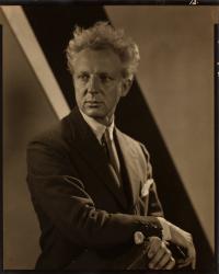 Not on viewA prolific celebrity portraitist, Steichen focuses here on a musical subject. Leopold Stokowski (1882-1977), a British orchestral conductor who performed with the New York Philharmonic and the Symphony of Air, also conducted the music for and appeared in Walt Disney’s 1940 Fantasia. This photograph demonstrate Steichen’s intimate understanding of light and shadow, which he manipulates to compose highly individualized portraits sensitive to his subjects’ public identities.
