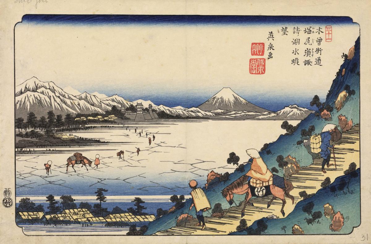 View of Lake Suwa from Shiojiro Pass, no. 31 from the series A Set of Pictures of Kisokaidō