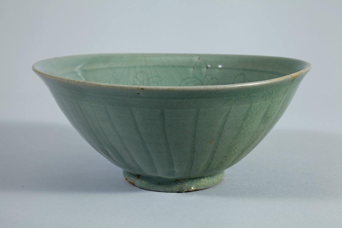 Celadon Bowl with Incised Floral Design