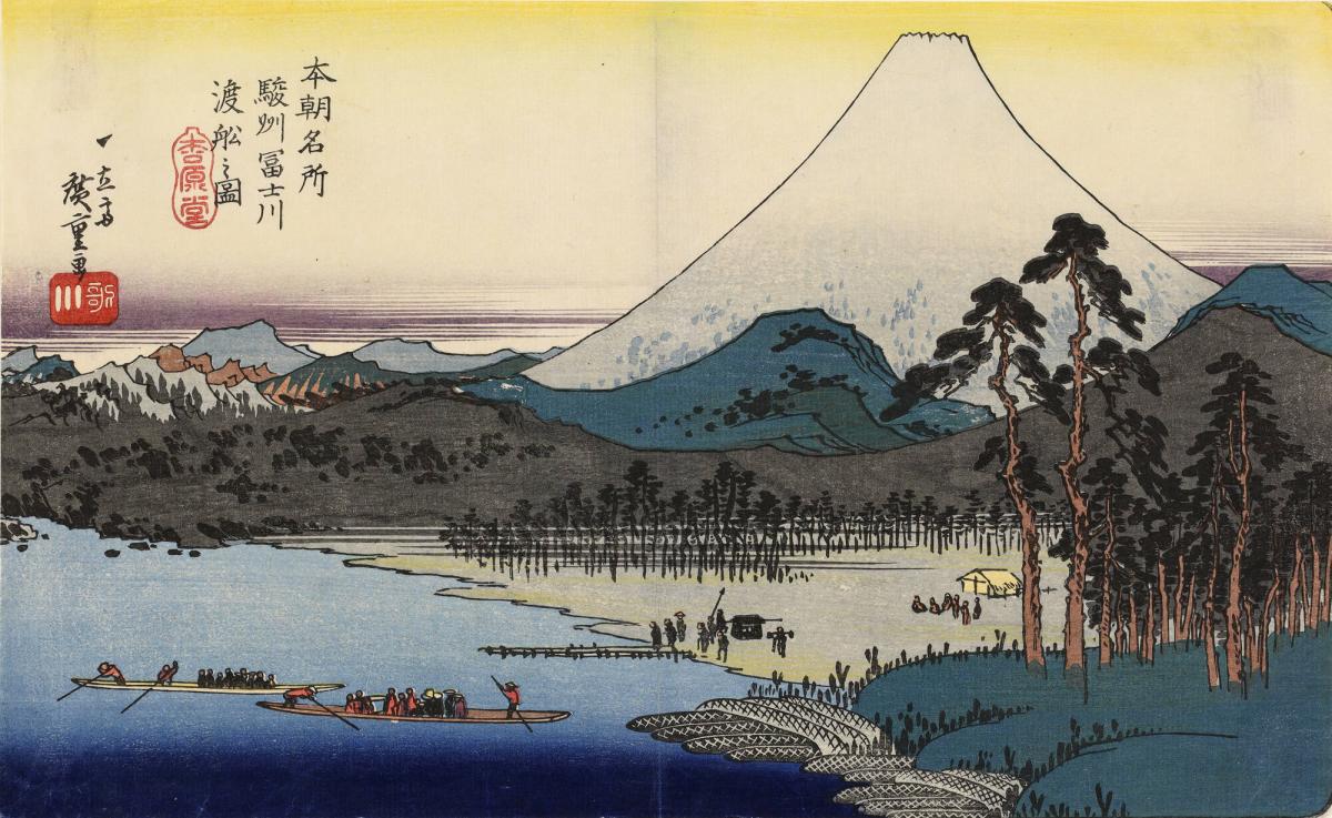 The Ferry Boats on the Fuji River in Suruga Province, from the series Famous Places in Japan