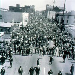 Martin Luther King Funeral Procession: Funeral Procession for Dr. Martin Luther King on Auburn Avenue after leaving King's church, Atlanta, Georgia, April 12th 1968, from the portfolio I am a Man