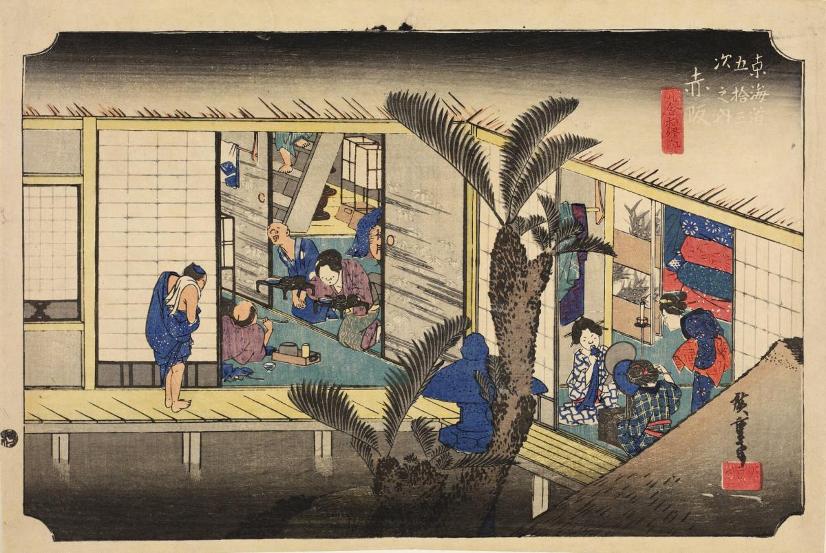 Travellers and Hostesses at an Inn at Akasaka, no. 37 from the series Fifty-three Stations of the Tōkaidō