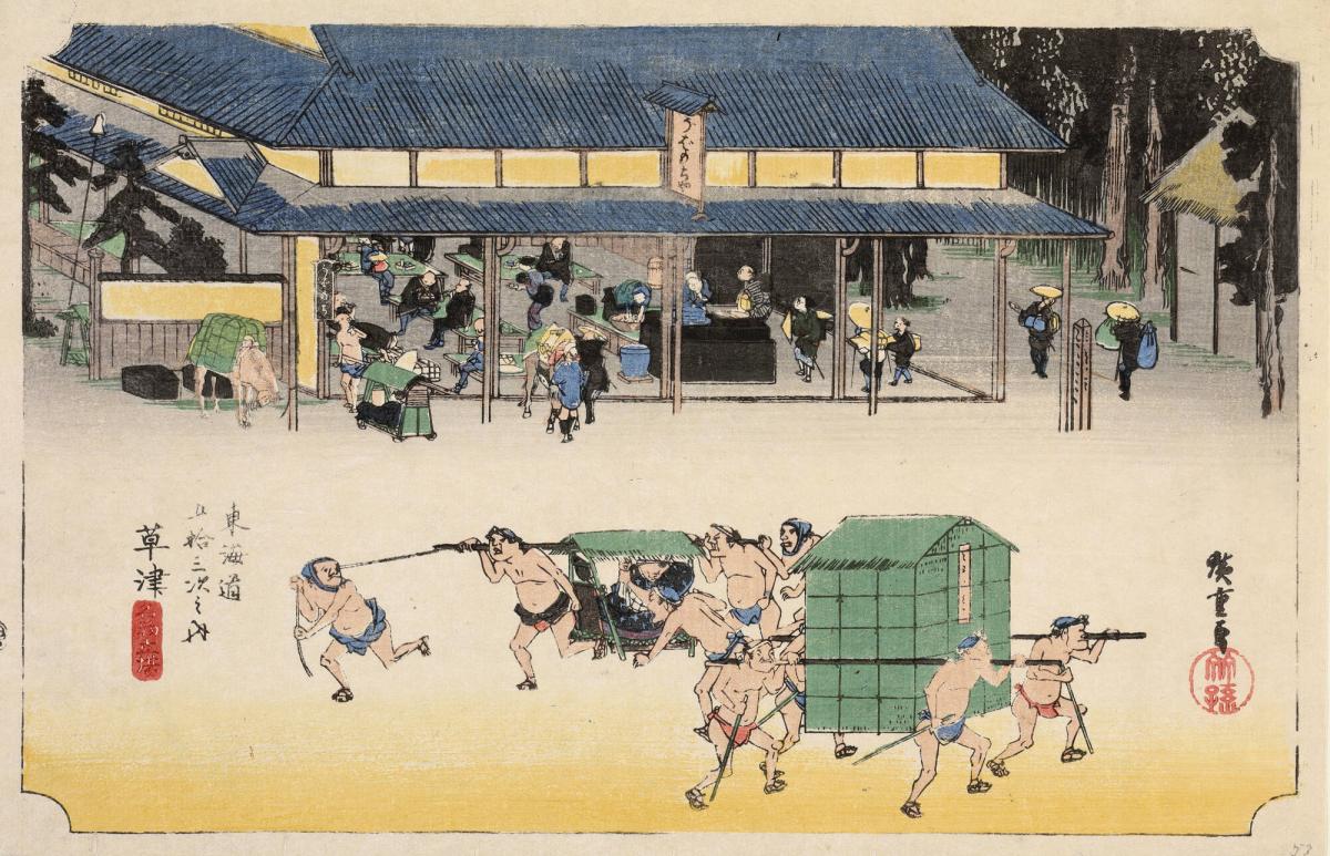 The Ubumochiya Restaurant Serving Local Rice Cakes at Kusatsu, no. 53 from the series Fifty-three Stations of the Tōkaidō