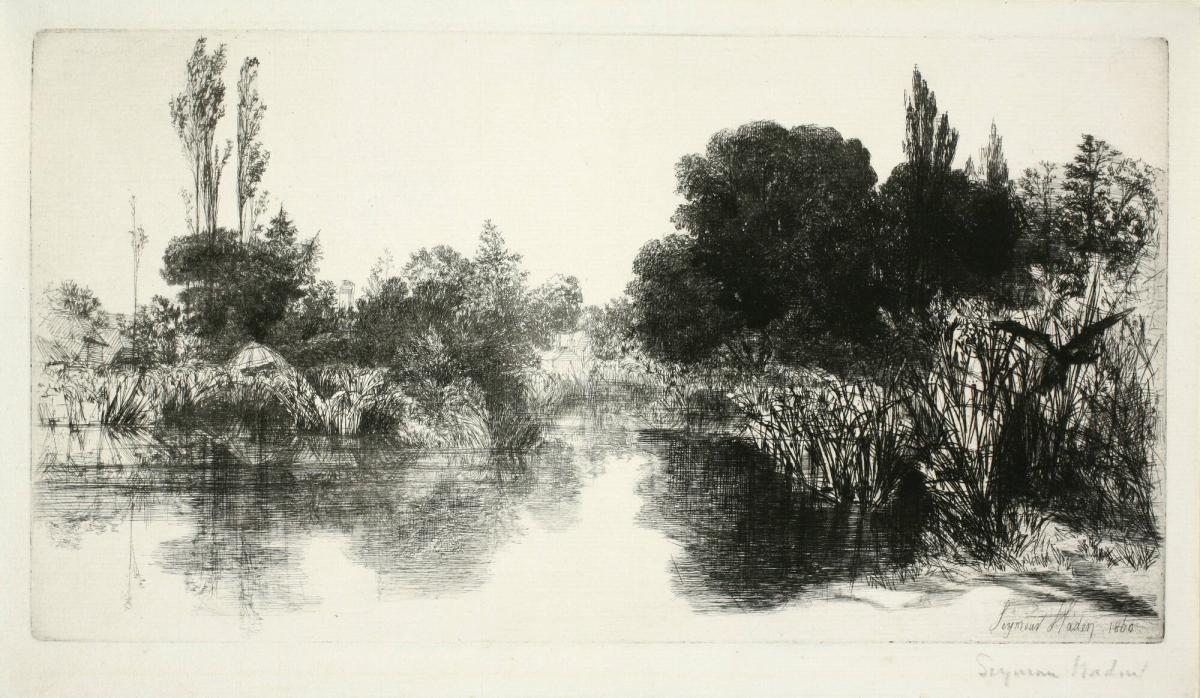 Not on viewA surgeon by profession, Francis Seymour Haden was also a dedicated printmaker who developed a close working relationship with his brother-in-law, the artist James McNeill Whistler. Haden's landscapes were renowned for their spontaneous sketch-like quality and mastery of foliage, water, and atmosphere. Crusading endlessly on behalf of etching's expressive possibilities, Haden launched a British Etching Revival in the 1860s that lasted over fifty years.