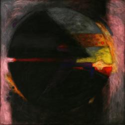 On viewA pioneer of non-objective art in Peru, Fernando de Szyszlo approaches Pre-Columbian history and Peruvian culture with a language of lyrical abstraction. The Execution of Túpac Amaru refers to the last indigenous Incan monarch who was publicly beheaded by the viceregal government; he was falsely accused of the murder of a group of Catholic priests. For Szyszlo, Túpac Amaru represents the struggle for Peruvian independence from Spanish colonial rule. Rather than literally illustrate the moment of the Incan leader’s death, Szyszlo alludes to the tragic event through his expressive use of color. The somber black that dominates the composition and the accents of vibrant pink, red, and yellow suggest violence and death. The circular disk, a recurrent motif in Szyszlo’s art, symbolizes a sun, a reference to the self-identification of the Incas as “Children of the Sun.” As king, Túpac Amaru would have functioned as the extension of the sovereignty of the Sun-God on earth; thus the dark orb represents his death. The black disk also derives from a literary source: the 16th-century Quechua text Apu Inka Atahuallpaman, an elegy to Atahualpa, another of the final leaders of the Inca Empire, which describes “a sun that turns yellow then darkens.” The bifurcation of the painting’s circular form may again allude to violence, or to a horizon line, while the bright colors and dotted patterns relate to Andean textiles.