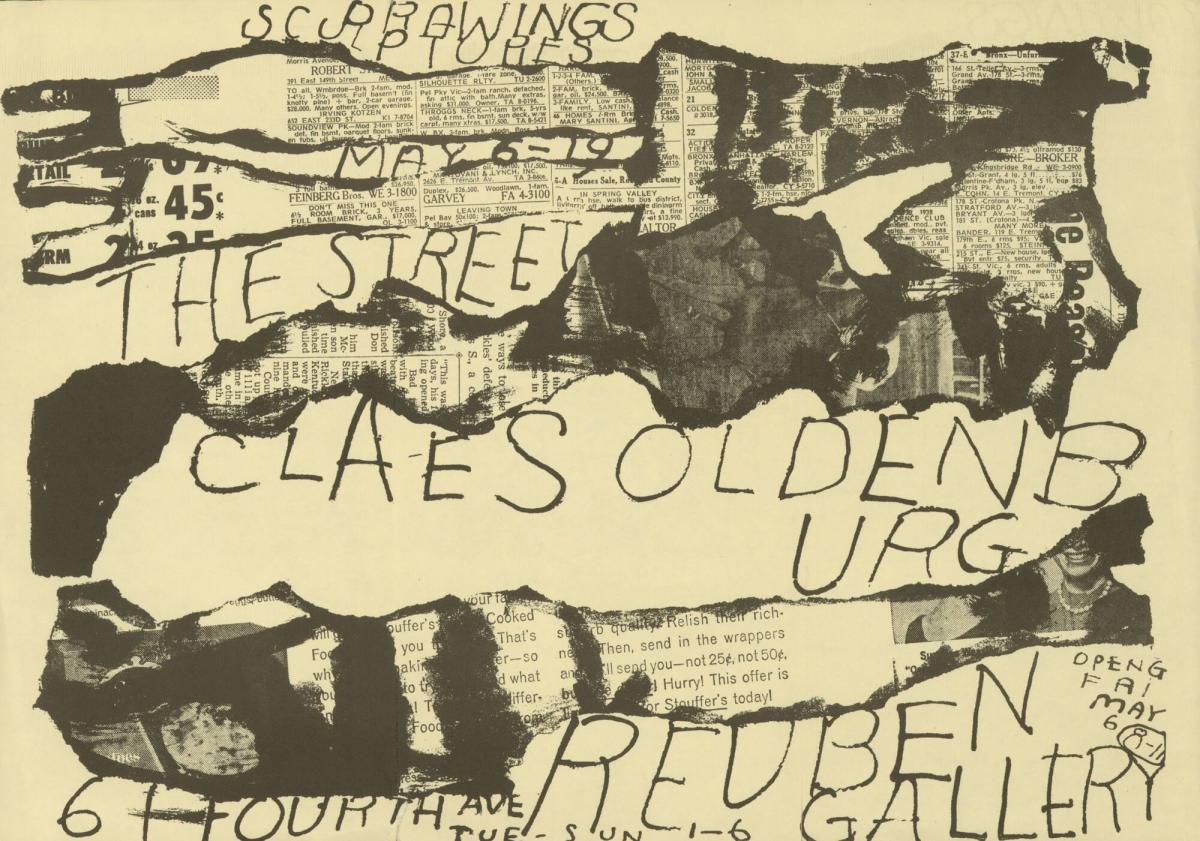 Exhibition Announcement: Oldenburg: The Street, Drawings, Sculptures, Reuben Gallery, New York, May 6 - 19, 1960