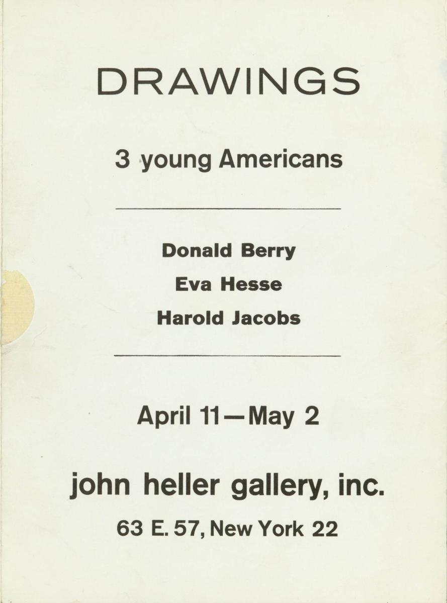 John Heller Gallery, Inc. Exhibition Announcement: Drawings: 3 Young Americans: Donald Berry, Eva Hesse, Harold Jacobs