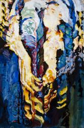 MediumWatercolor and gouache on paper float mounted on black mat board