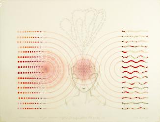 Not on viewIn describing her works from the early 2000s, Skuodas noted that they “arise from a meditative contemplation of seemingly disparate phenomena, which we have compartmentalized, and yet which function in tandem, parallel realizations of that ever-changing continuum we call Life: a cosmic dance of consequence.” She further noted that, although her work had become more abstract, “occasionally the ghost of a female figure recurs, as symbol and metaphor, for me, representative of the violation of universal soul or the brutalization of Mother Earth.” Here, her texts draw the viewer’s attention to both physics and metaphysics, to the elements of the material world and to our consciousness of a connection to them.