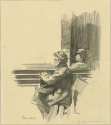 White Riders - Empty Bus Stop, from a series of drawings documenting the 1956 Montgomery Bus Boycott, Montgomery, AL