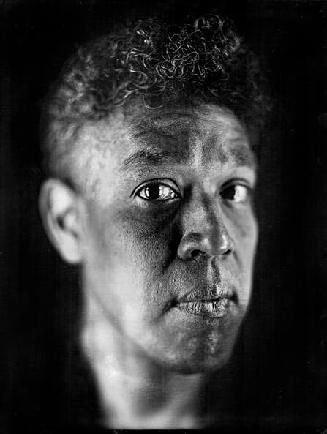 Not on viewThis is a portrait of artist Andres Serrano. Similar to Close's other production, it focuses on the face of one of his acquaintances. The intimate photograph, however, differs greatly from the large-scale, hyper-realistic close-ups painted on canvas for which Close is best known. For this work, the artist chose the anachronistic medium of the daguerreotype, the first form of photography invented in 1839. In contrast to film-based photography-which is endlessly reproducible-the daguerreotype image is unique, and is directly transferred onto a metal plate. The shiny surface acts like a mirror, and the image appears to shift according to the viewing angle.